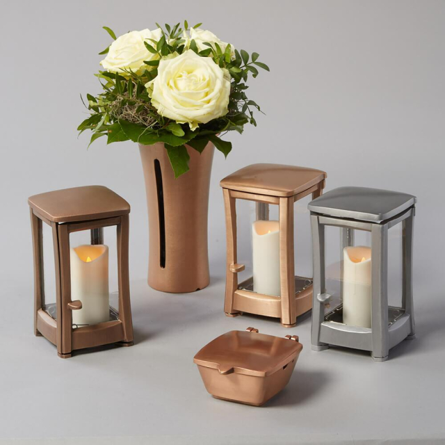 eine schlichte aus Bronze gearbeitete Grableuchte, welche von Hand im traditionellen Handwerk für Sie gefertigt und ausgestaltet wird. Auf Verzierungen und Ornamente wurde beim Design bewusst verzichtet, da das Augenmerk auf das hochwertig verarbeitete Material „Bronze“ gelegt wurde. Damit ihre neue Grableuchte auch ganzjährig im Freien verbleiben kann, wurde diese aufwendig von Hand imprägniert sodass die Grablampe auch nach vielen Jahren noch in ihrem ursprünglichen Glanz erstrahlen kann. Durch die spezielle Imprägnierung ist die Grableuchte resistent gegen sämtliche Witterungseinflüsse.