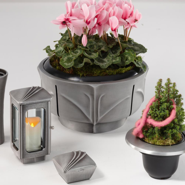 Hergestellt wird diese formschöne Grabschale von einer süddeutschen Kunstgiesserei. Bekannt für hochwertigen Grabschmuck . Diese wertvolle Grabschale wird aus Aluminum gestaltet und in liebevoller Handarbeit ausgearbeitet. Danach wird die Pflanzschale patiniert und mit einer doppelten Schutzlackierung versehen. Dadurch ist ein langjähriges, neuwertiges Erscheinungsbild garantiert und die Grabschale vor Verwitterung bestmöglich geschützt. Sie können diese schöne Grabschale mit den beigefügten Gewindestiften diebstahlsicher auf einen Sockel oder anderem festen Untergrund befestigen. Das Befestigungsmaterial hierzu liegt der Lieferung bei.
